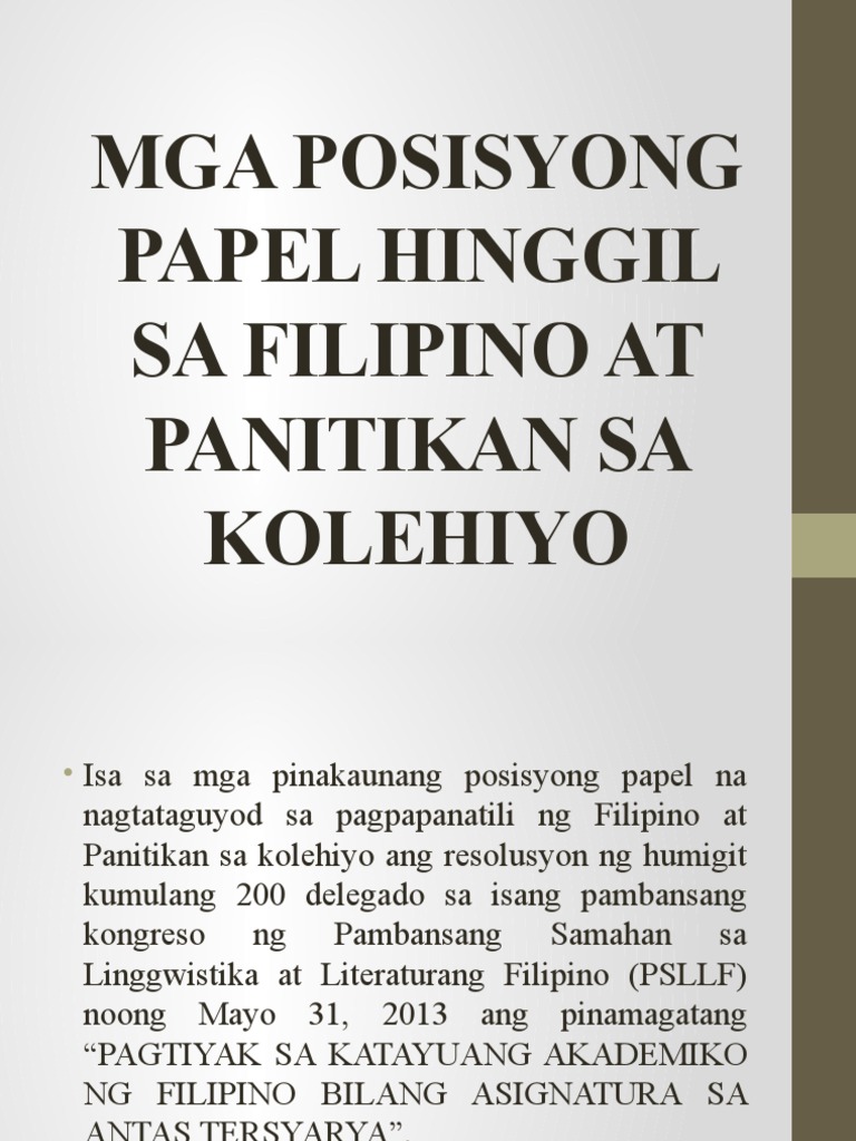 Aralin 2 Mga Posisyong Papel Hinggil Sa Filipino At Panitikan Pdf