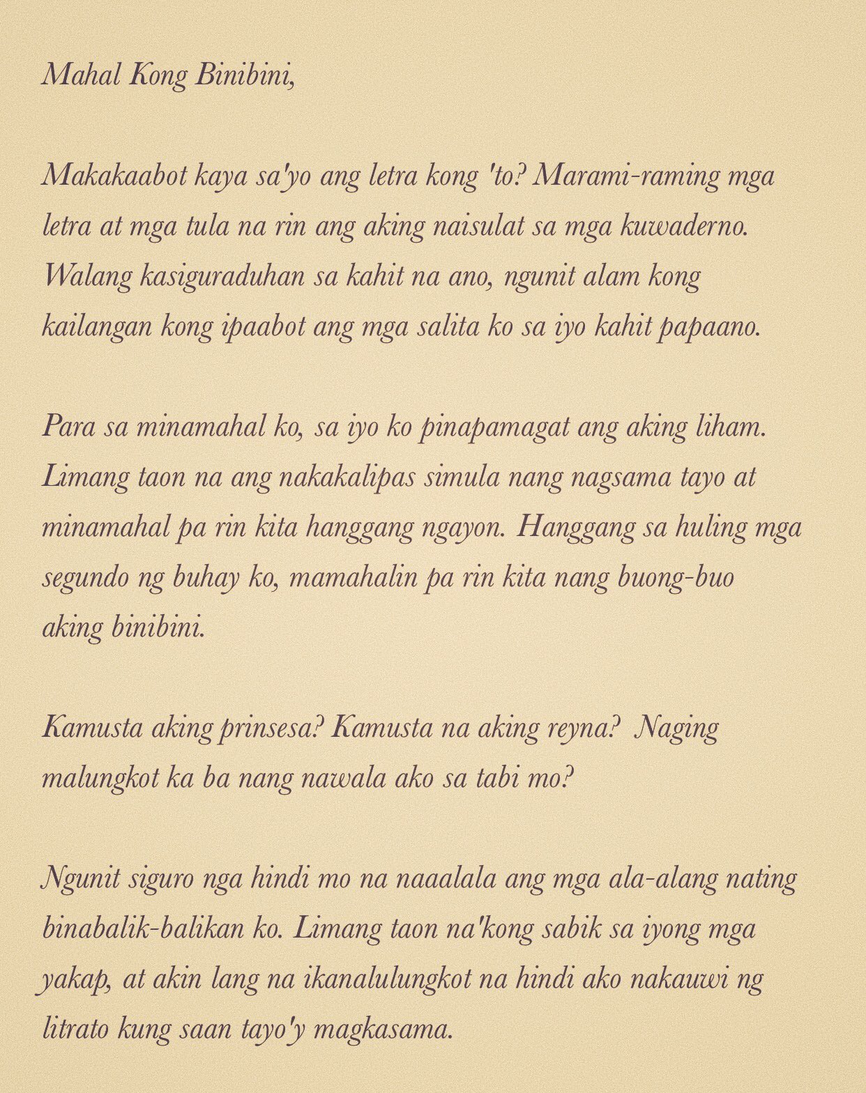 Hindi mo kailangan ipagsigawang mahal mo ako sapat na sa akin ang pagsanay sa sarili. Marami man kameng naging babae mo ngunit ako Ang ipinaglaban mo. Nagsusulat lamang ako ng mga tula at iba pa para sa simpleng katuwaan at wala po akong naiipon sa mga ito.