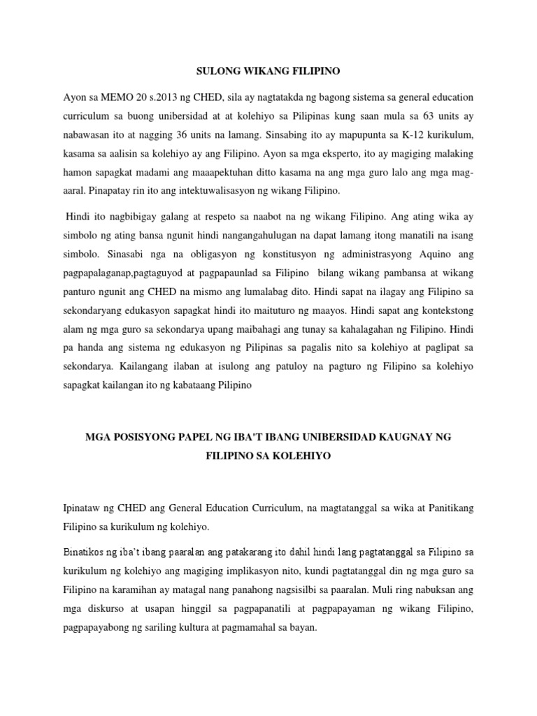 Posisyong papel susi ng. Buo rin ang kanilang paninindigang nasa wika ang pagtatanyag ng kaalamang lokal mga kaalamang. Ang pahayag na ito ay bahagi ng pahayag ng Departamento ng Filipino ng De La Salle University-Manila sa Paggunita sa Buwan ng Wikang Pambansa noong Agosto 2014. MGA POSISYONG PAPEL NG IBAT IBANG UNIBERSIDAD KAUGNAY NG FILIPINO SA KOLEHIYO 1.