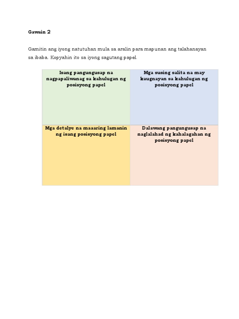 Posisyong papel na nauukol sa bagong batas na Republic Act No. Posisyong Papel - Pandemya. Posisyong Papel tungkol sa adhikain ng Komisyon ng Wikang Filipino Ang wika ay isa sa mga nagbibigay identidad sa isang bansa.